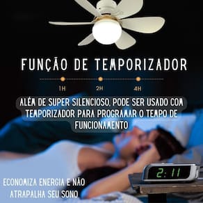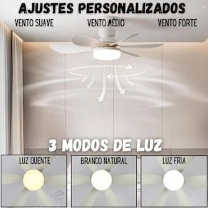 Ventilador de teto com lâmpada potente silencioso 60w cor: branco imagine estar em casa nesse calor e poder sentir brisa suave e reconfortante, ajustada perfeitamente ao seu gosto. Este ventilador, com sua fácil instalação, é a resposta para suas necessidades de ventilação e iluminação. Com ajustes personalizados em três níveis de vento - suave, médio e forte - este ventilador se adapta ao seu momento, seja para uma leve brisa em uma tarde tranquila ou para uma ventilação vigorosa durante dias mais quentes. Além disso, ele oferece três modos de luz para combinar com a atmosfera de qualquer cômodo da sua casa. Desde o aconchego da luz quente até a vivacidade da luz fria, você pode criar o ambiente perfeito para relaxar, trabalhar ou socializar. Mas as vantagens não param por aí com a função de temporizador, você pode programar o ventilador para funcionar nos horários que desejar, economizando energia e evitando interrupções no seu sono. E o melhor de tudo: a instalação é uma brisa basta rosqueá-lo em um bocal de tomada de luz padrão - sem ferramentas, sem parafusos, sem fiação complicada. Faça você mesmo e desfrute de 60w de potência e conforto. ------------------ ------------------ como é feita a instalação deste ventilador r: basta rosqueá-lo em um bocal de tomada de luz padrão, sem a necessidade de ferramentas, parafusos ou fiação. Quais são os modos de luz oferecidos por este ventilador r: luz branca natural, luz quente e luz fria. O ventilador possui alguma função de economia de energia r: sim, ele pode ser utilizado com temporizador para programar o tempo de funcionamento, economizando energia. Quais são os ajustes de vento disponíveis no ventilador r: vento suave, vento médio e vento forte. ------------------ especificações ------------------ potência: 60w. Função de temporizador. 3 ajustes de luz. 3 intensidades de vento. Silencioso. Altura: 18. 5cm. Largura: 52 cm. ------------------ conteúdo ------------------ 1x ventilador. 1x controle. 1x manual. Anúncio referente a ventilador com l mpada acessórios que ambientam as fotos não inclusos. ------------------ apresentação: ------------------ - qualidade garantida. - atendimento qualificado. - enviamos para todo o brasil. - compra garantida. - despachamos em até 1 dia útil após confirmação do pagamento