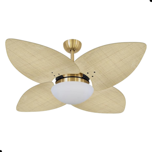 Ventilador de Teto Dormamu Dourado 4 Pás Palmae Natural 127V com Controle