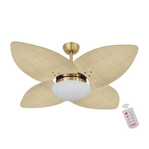 Ventilador de Teto Dormamu Dourado 4 Pás Palmae Natural 220V com Controle