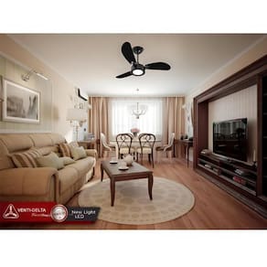 Marca: Ventidelta Modelo: 38-3163 (110V) OU 38-3264 (220V) Voltagem: 110V OU 220V Potência: 130W Rotação Máxima: 180 a 460 rpm Pás: 3 pás laqueadas na cor Preta Iluminação: Luminária Led com 12W já incluso cor 6.000k branca Área de Ventilação: 20m² Cores: Preto Dimensões da Embalagem: Altura: 16cm Largura: 24cm Comprimento: 40,5cm Peso Bruto: 3,095 Kg Dimensão do produto montado: Altura: 54cm Diâmetro: 93cm Peso Liquido: 2,727 Kg