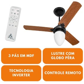 Ventilador De Teto Inverter Eficiente Com 3 Pás Globo Pêra - Venti-Delta