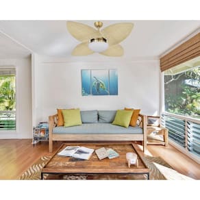 Ventilador De Teto Vd42 Dunamis Dourado 4Pás Rattan Natural 110V