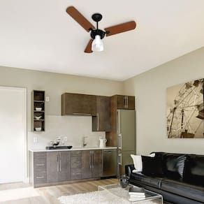 Ventilador de Teto com 3 pás Padrão Mogno, globo taça em plastico injetado, capacidade para 1 lampada eletronica ou de Led.