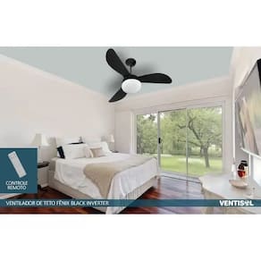 Ventilador de teto Ventisol Fênix LED com design moderno, motor inverter de alta eficiência e 3 pás. Ideal para ambientes residenciais, oferece ventilação potente, baixo consumo de energia e iluminação LED integrada. Controle remoto incluso para maior comodidade.
