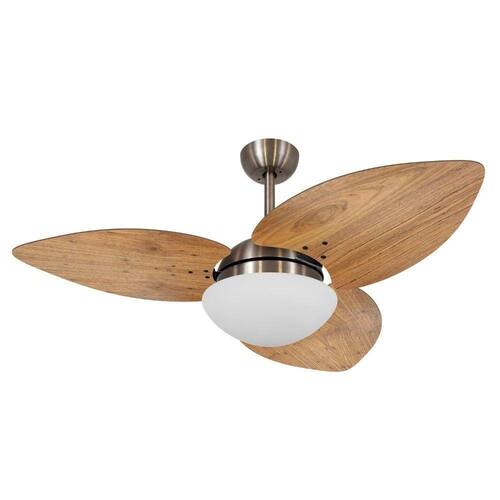 Especificação técnica: Marca: Volare Modelo: VD42 Dunamis S3 Rádica Quantidade de Pás: 3 Estrutura das Pás: Pás em MDF laqueada Cor das Pás: Freijó Corpo: Bronze Voltagem: 127v ou 220v Acionamento: Controle de parede (opcional controle remoto vendido separadamente) Número de Velocidades: 3 Potência do Motor: 120w Frequência: 60Hz RPM do Motor: 404 Área de Vazão: 2,62 m/s Selo Procel (Economia de Energia): A Soquete de Lâmpada: 2 x E27 Luminária: Vidro Acetinado com Acabamento Fosco Ajuste de altura: Não Silencioso: Sim Função Exaustão e Ventilação: Sim Dimensões do ventilador: 48cm de altura x 120 de diâmetro