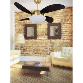 Especificação técnica: Marca: Volare Modelo: VD42 FLY Quantidade de Pás: 4 Estrutura das Pás: Pás em MDF laqueada Cor das Pás: Tabaco Corpo: Dourado Voltagem: 220v Acionamento: Controle de parede opcional controle remoto vendido separadamente Numero de Velocidades: 3 Potência do Motor: 127w frequência: 60Hz RPM do Motor: 404 Área de Vazão: 2,17 m/s Selo Procel Economia de Energia : B Soquete de Lâmpada: 2 x E27 Luminária: Vidro Acetinado com Acabamento Fosco Ajuste de altura: Não Silencioso: Sim Função Exaustão e Ventilação: Sim Dimensões do ventilador: 48cm de altura x 105 de diâmetro