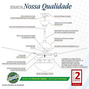 Características: - Ideal para ambientes de 25 a 30 m, considerar o pé direito até 3 metros - Motor com protetor térmico que desliga automaticamente em caso de superaquecimento - Motor robusto, veloz e silencioso