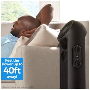 Potência Turbo 2 em 1: Sinta a potente brisa do ventilador torre TurboForce a até 12 metros de distância. Este ventilador de alta potência possui 2 ventiladores controlados de forma independente, com 6 velocidades e 15 configurações de conforto, permitindo um resfriamento personalizado.