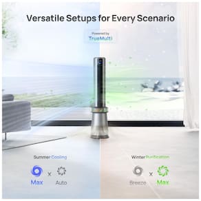 Além disso, o ventilador oferece várias opções de oscilação para distribuir o ar puro de maneira eficaz. Você pode optar pela oscilação simétrica de 0 a 120 graus, uma faixa de oscilação personalizada assimétrica ou um fluxo de ar direcionado que ajusta a saída do ventilador para a posição desejada, também em uma faixa de 120 graus.
