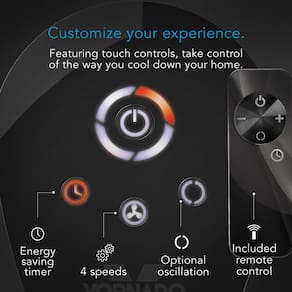 Ventilador de torre oscilante Vornado OSCR37 e circulador de ar com oscilação suave e remota, temporizador e controles de toque, 37 polegadas, preto