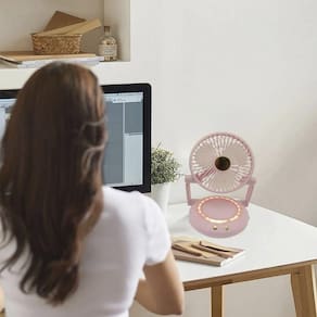 Ventilador possui led em sua base, que ilumina o ambiente e facilita para fazer maquiagens, leituras e outros.