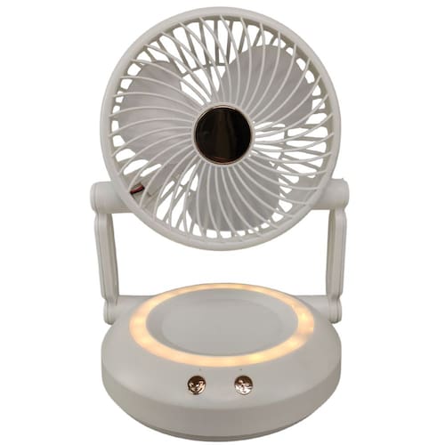 Ventilador possui led em sua base, que ilumina o ambiente e facilita para fazer maquiagens, leituras e outros.