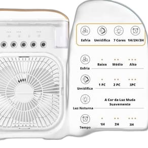 Linha: Ventilador de Mesa Climatizador 10W - Mini Ar Ventilador Iluminação: Com luz É silencioso: Sim