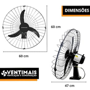 Especificações Técnicas: - Até 1500 RPM - Ajuste de inclinação - Vazão de 1,05 m³/s - Marca: Ventimais - Modelo: VOP60L01 - Potência: 147W - Voltagem: 127V