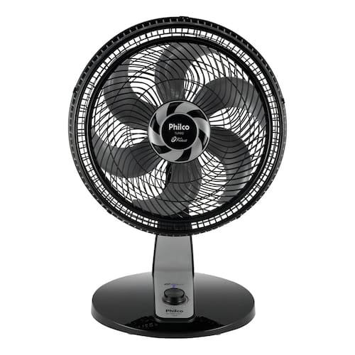 Ficha Técnica Detalhada: Marca: Philco Modelo: PVT400P Turbo Vírus Protect Voltagem: 220V Potencia: 160W Consumo: 0,16 kWh Quantidade de Pás: 6 pás Diâmetro da Grade: 47cm Diâmetro da Hélice: 40cm Cor: Preto Material: Plástico de alta resistência Velocidades: 3 níveis Tipo de Ventilador: Mesa ou Coluna dependendo da montagem Oscilação: Horizontal automática Inclinação: Vertical regulável Fusível: Térmico de Segurança Sim Grade Removível: Sim Base Antiderrapante: Sim Alca para Transporte: Sim
