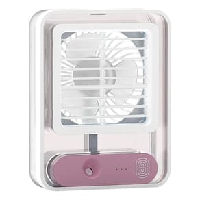 Ventilador Portatil Umidificador De Mesa Com Led Luminaria Com um design moderno e compacto, o Mini Ventilador Portátil é perfeito para quem está em movimento, além de ser muito silencioso. Ideal para uma noite de sono repousante ou de trabalho ou estudo ininterrupto. Melhor ainda, seu ventilador silencioso não será uma distração, garantindo que você permaneça focado, tranquilo e produtivo. Carregamento USB, e com três níveis de velocidade, este ventilador ajuda a resfriar, umidificar e purificar para obter ar fresco e limpo a qualquer hora, em qualquer lugar. Recomenda-se o uso de água gelada ou cubos de gelo para um melhor efeito de resfriamento. O ventilador possui uma seleção livre de direção do vento. O ângulo pode ser ajustado livremente para atender a diferentes posições e aproveitar a brisa. Além de conter uma luz interna, de uso opcional, que deixa o ambiente muito agradável.