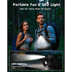 - ?Essencial para acampamento?Este pequeno ventilador externo portátil com uma luz LED e SOS garante visibilidade e segurança à noite. O design compacto e leve permite que seja facilmente colocado em uma mochila ou preso a um cinto, mantendo suas mãos livres durante atividades ao ar livre. Perfeito para caminhadas, pesca ou trabalho ao ar livre, este ventilador de cintura ao ar livre mantém você fresco e confortável do amanhecer ao anoitecer.