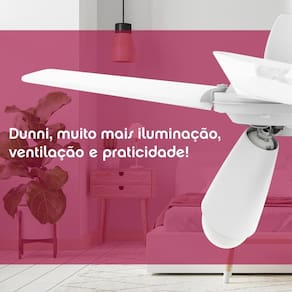 Ventilador De Teto Aliseu Dunni Branco Ventilador Aliseu Dunni, tem pás com garras acopladas, trabalhadas em termoplásticos super-resistentes. Com 92cm de diâmetro, luminária para duas lâmpadas eletrônicas ou LED e controle de parede. Tem motor supereconômico e selo Procel triplo A do INMETRO. Ideal para áreas de até 20m.