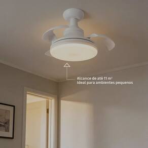 Renove seu ambiente com o Ventilador de Teto Retratil Aliseu, uma peca que une sofisticacao e funcionalidade. Seu design moderno e compacto, com 40cm de diametro quando aberto, se integra harmoniosamente a qualquer decoracao. Ao ser desligado, suas pas retrateis se recolhem, transformando-o em uma elegante luminaria, conferindo um visual clean e minimalista ao seu espaco. A cor branca neutra garante versatilidade, combinando com diferentes estilos de mobiliario e cores de parede.