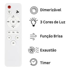 Desfrute de um conforto incomparavel com a tecnologia 3 em 1 deste ventilador. Ele nao so refresca o ambiente com sua ventilacao eficiente, mas tambem ilumina com sua luminaria LED integrada. O soquete E27 permite a personalizacao da iluminacao, possibilitando a escolha da lampada ideal para suas necessidades. A operacao e intuitiva, garantindo praticidade no dia a dia e um ambiente mais agradavel em qualquer estacao.