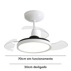 Descubra a elegancia e a modernidade do Ventilador de Teto Aliseu Retratil Mid. Com um design sofisticado e inovador, suas 3 pas retrateis se desdobram em um disco de 70 cm, adicionando um toque de requinte ao ambiente quando em uso e se recolhendo discretamente quando desligado. O acabamento branco puro confere um visual clean e versatil, integrando-se perfeitamente a qualquer estilo de decoracao, do classico ao contemporaneo. Alem disso, a iluminacao LED integrada oferece uma luz agradavel e funcional, completando o charme deste aparelho.
