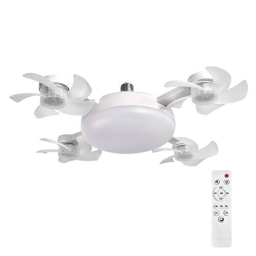 Ventilador De Teto Com Led 50w Bivolt E27 Com Controle Remoto, 3 Velocidades E 3 Tons De Luz, Pás Dobráveis Branco 50cm