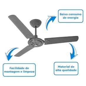 Hélices de 98?cm em aço com acabamento grafite resistente.