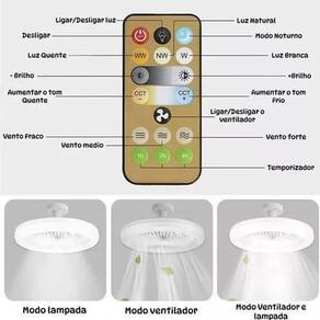 Ventilador Teto: Luz Led E Ventilação Oscilante 30W Controle - Bivolt