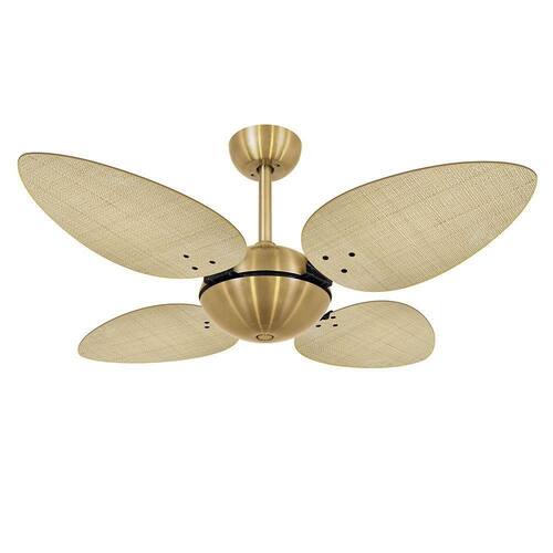 Ventilador de Teto Volare Dourado Office Pétalo Palmae 4 Pás Natural O ventilador de teto possui os detalhes em dourado, e as 4 pás em cor natural além de serem revestidas em palha, o design é inovador e exclusivo da marca Volare. Com 3 níveis de velocidade e super potência, o ventilador de teto deixará o ambiente mais fresco e arejado, além de dar um toque especial na decoração seja da sala, sala de jantar, quarto ou escritório. Com 2 anos de garantia e econômico, o ventilador de teto possui também as funções de ventilação e exaustão. Especificação técnica: Marca: Volare Modelo: office Pétalo Palmae Quantidade de Pás: 4 Estrutura das Pás: Pás em MDF laqueada, revestida em palha Cor das Pás: Natural Corpo: Dourado Voltagem: 220v Acionamento: Controle de parede opcional controle remoto vendido separadamente Numero de Velocidades: 3 Potência do Motor: 127w frequência: 60Hz RPM do Motor: 404 Área de Vazão: 2,17 m/s Selo Procel Economia de Energia : B Soquete de Lâmpada: Não Possui Não possui luminária Ajuste de altura: Não Silencioso: Sim Função Exaustão e Ventilação: Sim Dimensões do ventilador: 43cm de altura x 105 de diâmetro Conteúdo da Embalagem: 1 Ventilador de teto 1 Controle de parede 1 Manual de instalação Observação: contrate um profissional para instalação. Confira nossa linha completa de ventiladores para deixar o ambiente da sua casa ou escritório mais fresco e sofisticado.