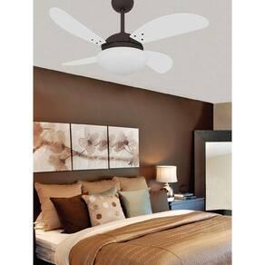 Ventilador de Teto Volare Marrom Corten VD42 Fly 4 Pás Branco O ventilador de teto é da marca Volare, possui 4 pás garantindo maior ventilação no ambiente instalado, silencioso e moderno. As pás são na cor branca e o corpo do ventilador na cor marrom. Perfeito para ambientes corporativos e para a sua residência, seja quarto, sala, sala de jantar, o ventilador possui iluminação central para deixar o ambiente mais iluminado e aconchegante. Especificação técnica: Marca: Volare Modelo: VD42 FLY Quantidade de Pás: 4 Estrutura das Pás: Pás em MDF laqueada Cor das Pás: Branco Corpo: Marrom Corten Voltagem: 127v Acionamento: Controle de parede opcional controle remoto vendido separadamente Numero de Velocidades: 3 Potência do Motor: 127w frequência: 60Hz RPM do Motor: 404 Área de Vazão: 2,17 m/s Selo Procel Economia de Energia : B Soquete de Lâmpada: 2 x E27 Luminária: Vidro Acetinado com Acabamento Fosco Ajuste de altura: Não Silencioso: Sim Função Exaustão e Ventilação: Sim Dimensões do ventilador: 48cm de altura x 105 de diâmetro Conteúdo da Embalagem: 1 Ventilador de teto 1 Controle de parede 1 Manual de instalação Observação: contrate um para instalação.