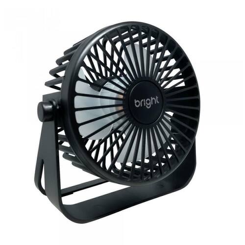 O modelo de mesa USB VN001 da Bright possui 3 pás, potente de 5V, ajuste manual de direção 360º - botao liga/desliga, além de ser inclinável e ajustável.