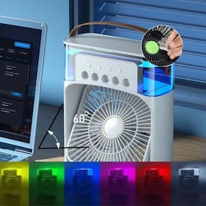 Com o Ventilador USB Umidificador, você não precisa mais se preocupar com o calor insuportável. Ele possui um compartimento para gelo, que resfria o ar de forma rápida e eficiente, transformando o ambiente em um oásis de frescor. Além disso, o ventilador também possui a função de purificar o ar, tornando-o mais saudável e livre de impurezas.