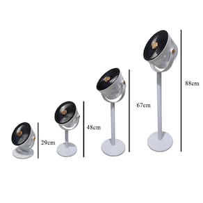 O ventilador possui altura ajustável, podendo deixar sob a mesa ou mesmo no chão.