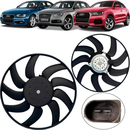 Eletroventilador sem defletor P/lado esquerdo do defletor Sem resistência Conector de 2 pinos Hélice maior de 9 pás c/384mm Voltagem de 12v Sentido horário Motor baixo