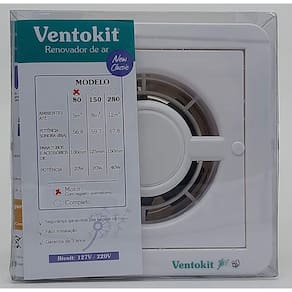Ventokit exaustor new classic m 80 bivolt Ventokit new classic m 80 com registro anti retorno é indicado para ambientes de até 5m. Promove a ventilação dos ambientes e banheiros de forma eficiente e econômica. Reduz os riscos de infecções, decorrentes de vírus e bactérias, poluentes e odores presentes no ambiente. Adapta-se a tubos de 100mm. Produz pressão negativa no ambiente, possibilitando a elevação e retirada de organismos maiores, que devido a seu tamanho, não entram em suspensão espontânea.