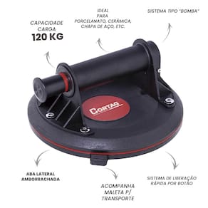 Contém: 1 Ventosa de Sucção a Vácuo Cortag de 200 mm. 1 Maleta de transporte.