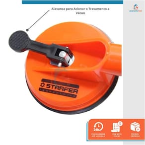 A Ventosa tripla é ideal para o transporte de chapas de vidro, pisos de cerâmica, mármore, espelhos, portas, armários e objetos frágeis. A sucção exercida através das borrachas das ventosas permite transportar os objetos em segurança, agilidade e rapidez. Sem necessidade de tocar nos materiais, a fim de não danificá-los permitindo também evitar que estes objetos venham a se desprender enquanto o seu trajeto de transporte é realizado.Para utilização basta apoiar a ventosa sob o material e abaixar a alavanca posicionada em cima das pontas para firmar por sucção. Muito utilizado por empresas de materiais de construção, vidraçarias, pedreiros, montadores de móveis, até mesmo em funilaria para desamassar funilaria de carros, motos e caminhões.CARACTERÍSTICAS TÉCNICAS:Material corpo e alça: Plástico ABSMaterial ventosa: BorrachaTipo de fixação: Sistema de sucçãoSucção: BorrachaDiâmetro de cada ventosa: 115mmTempo máximo de fixação: 15minTipo de ventosa: TriplaPeso máximo suportado: 75kgIndicado para: vidros, espelhos, cerâmicas, superfícies lisasMarca: StarferRef.: 15022337