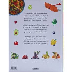 "Verde, Vermelho, Roxo, Amarelo e Laranja: Coloque Mais Cor em Seu Prato Informações essenciais sobre alimentação saudável e mais de 20 receitas vegetarianas deliciosas Nesse volume, os pequenos leitores descobrirão as vantagens de uma alimentaçãobaseada em frutas, legumes e verduras. Cada cor traz propriedades que melhoram um aspecto específico do organismo. Alimentos verdes, como ervilha, espinafre e vagem, são repletos de vitaminas, fibras e nutrientes que mantêm o corpo forte e saudável. Vermelhos, como tomate, rabanete e frutas vermelhas, são boas fontes de vitaminas, que ajudam a proteger as células do corpo. Roxos, como amora, repolho roxo e uva, contêm substâncias que ajudam a proteger o corpo de doenças e a manter o coração saudável. Amarelos, em geral, possuem muitas vitaminas A e C: comer milho, banana, damasco e abacaxi estimula o sistema imunológico. E os alaranjados, como cenoura, abóbora, mamão e – é claro – laranja, contêm uma substância chamada “caroteno”, que deixa olhos, pele, cabelos, ossos e dentes fortes e saudáveis. Com este título, as crianças poderão preparar receitas multicoloridas, apetitosas e fáceis de fazer, repletas de nutrientes, vitaminas, minerais, fibras e proteínas, que enriquecem a alimentação diária, entre elas a Tortinha de espinafre, a Lasanha vegetariana, a Salada de quinoa e pimentão, a Omelete de batata-doce e o Picolé de coco e manga."