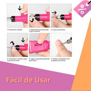 Versatilidade Profissional: Lixadeira Lixa Motor De Unha Elétrica, Bivolt 110v - 220v Para unhas Naturais, unhas de porcelana, gel ou acrygel; Pode ser usada nas unhas naturais com a opção de baixa rotação Sem esforço, sem segredo, e muito fácil de usar, Proporciona ótimo acabamento e qualidade profissional nas unhas postiças.