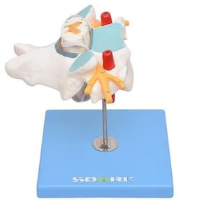 O modelo anatômico de vértebra cervical é confeccionado em PVC e pintado á mão, oferecendo ricos detalhes do osso e nervos, o Modelo SD-5013 disponibiliza 21 estruturas identificadas entre outras, tais como:* Corpo vertebral; * Acantha; * Processo transverso; * Artéria vertebral; * Processo Articular Superior; * Ramo anterior do nervo espinhal; * Ramo posterior do nervo espinhal; * Ramo de comunicação do nervo espinhal; * Gânglio espinhal; * Cone medular espinhal; * Fissura mediana anterior; * Fossa anterolateral; * Fossa posterolateral;* Fossa medial posterior; * Canal de harvers; * Corno cineral anterior; * Corno cineral posterior; * Fascículo grácil; * Fascículo cuneiforme; * Cordão lateral da substância branca; * Cordão anterior da substância branca.&Ndash; Montado em Base plástica;