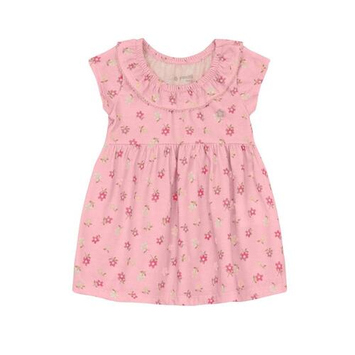 Encante-se com o vestido bebê menina da Brandili, confeccionado em meia malha suave e adorável estampa de florzinhas! Com mangas curtas e uma delicada gola redonda com babados, este vestido traz um toque de charme e conforto para os pequenos momentos. As pregas na saia proporcionam um efeito rodado perfeito para brincar e se divertir. Combine com um laço no cabelo e sandálias para um look adorável. Invista na alegria e estilo da sua pequena com essa peça que ela vai adorar usar!