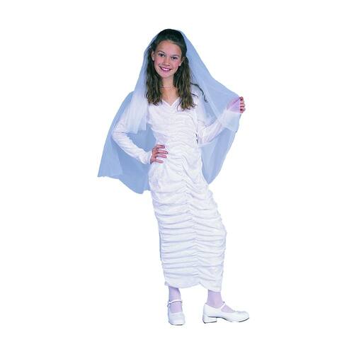 Vestido branco medieval Girl e cabeça de veludo, vestido de frente esticado em veludo branco, mangas compridas e vestido de cabeça transparente. Tamanho infantil médio (8-10) veludo 100% poliéster