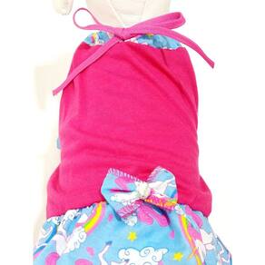 Ideal para o Verão, Corpo, confeccionado em malha PV, na cor rosa, Saia, confeccionada em tricoline de estampa de unicórnio azul, Acabamento em viés rosa, Laço confeccionado no tecido da saia, Tamanho: GG Medidas Aproximadas: 42 cm de comprimento/costas, 54 cm de circunferência tórax/peito e 34 cm de circunferência pescoço. Modelo prático e leve para o seu pet, O tecido é leve e confortável e não aquece o cão, pode ser em dias de verão, porém caso esteja muito sol não recomendamos nenhuma vestimenta na sua cachorrinha. Deixe sua cachorra tão bonita quanto você nessa estação do ano. Também recomendamos a utilização desse vestido nos dias de primavera ou início de inverno. Marca: Não Informado