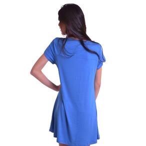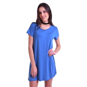 Vestido Camisetão T-shirt Curto Soltinho Azul Liso Uma peça que transmite o conforto e sofisticação, para looks mais despojados. Peça básica para realçar seu visual com ousadia e leveza. Prático, confortável , ideal para o dia a dia. Vestido soltinho, combina com tudo seja tênis, sandália, bota ou rasteirinha. Confeccionado em Viscolycra. Cor : Azul Tamanho: P