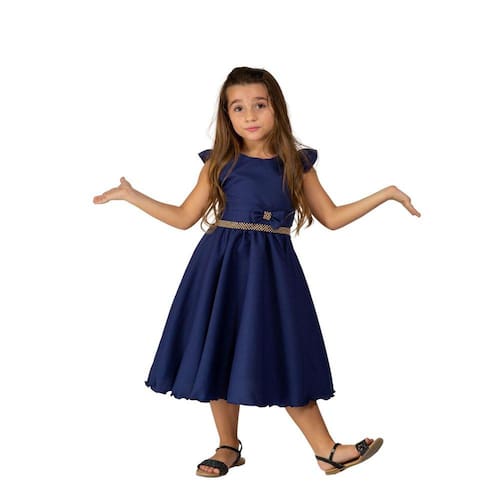 Vestido Casual Azul Marinho Infantil De Festa 15 Anos Liso - Azul Marinho - 6