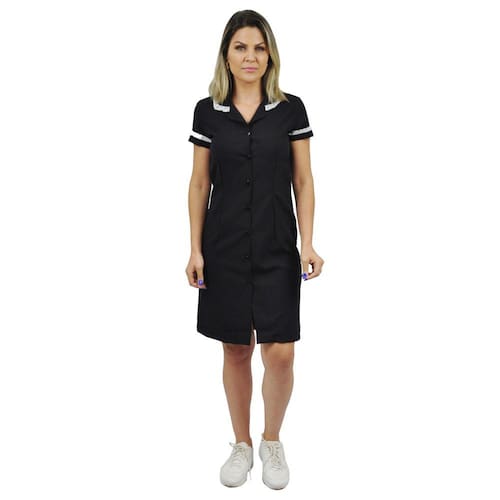 O Vestido de Copeira, Camareira, Doméstica, Secretária do Lar é confeccionado em OXFORD, tecido 100% Poliéster.