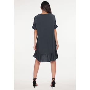 Vestido Curto Viscose Mullet Amplo Gola Canoa Babado Azul Marinho - Azul Marinho - P
