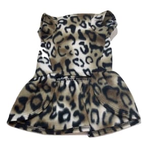 Vestido confeccionado em tecido soft; Laço na cor do tecido; Cor: estampa de onça; Ideal para todas as ocasiões, seu pet vai amar; Extremamente gostoso, macio, leve mas muito quentinho; Lavável em maquina e a mão. Medidas aproximadas: 34 cm de comprimento, 44 cm de circunferência tórax, 27 cm de circunferência de pescoço.Vestido de inverno soft para cachorro azul com estampa de patinhas brancas tamanho M Marca: Nica pet Ean: 7435365492154