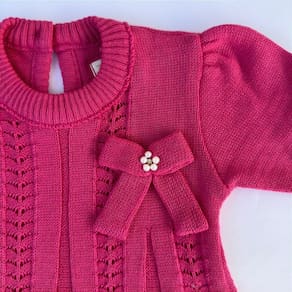 Vestido de tricô com laço e rico em texturas, nosso modelo Helena chegou para arrancar suspiros da mamãe, dispónivel em duas cores (rosa e vermelho) ele é perfeito para acompanhar o baby no passeio na casa da vovó, visita ao pediatra, passeio em família ou em qualquer outro lugar que você prefira estar.