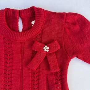 Vestido de tricô com laço e rico em texturas, nosso modelo Helena chegou para arrancar suspiros da mamãe, dispónivel em duas cores (rosa e vermelho) ele é perfeito para acompanhar o baby no passeio na casa da vovó, visita ao pediatra, passeio em família ou em qualquer outro lugar que você prefira estar.